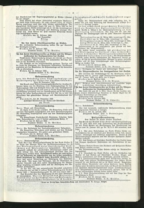 Polizeiamt Gießen. Frhr. v. Gemmingen.