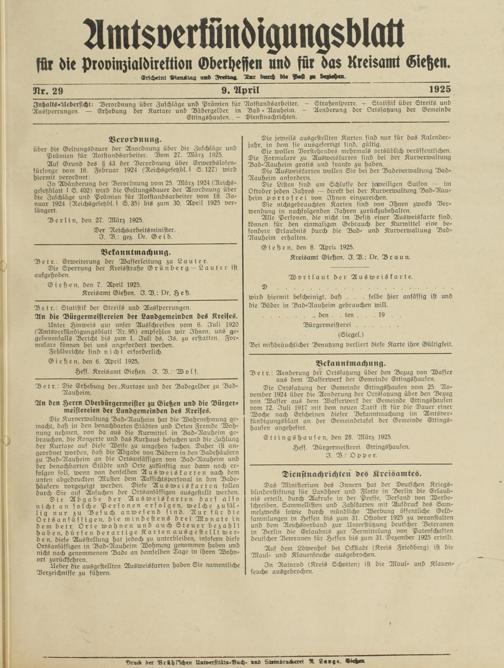 Giehen, den 7. April 1925.