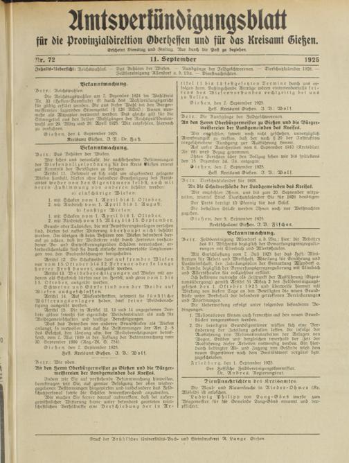 Gießen, den 5. September 1925.