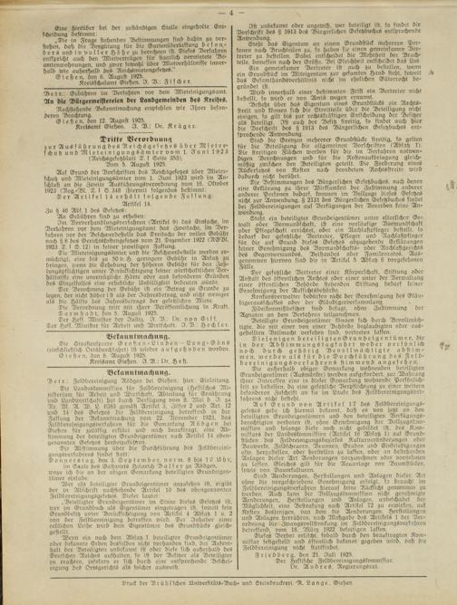 Kretsamt Gießen. I. D.: Dr. Krüger.