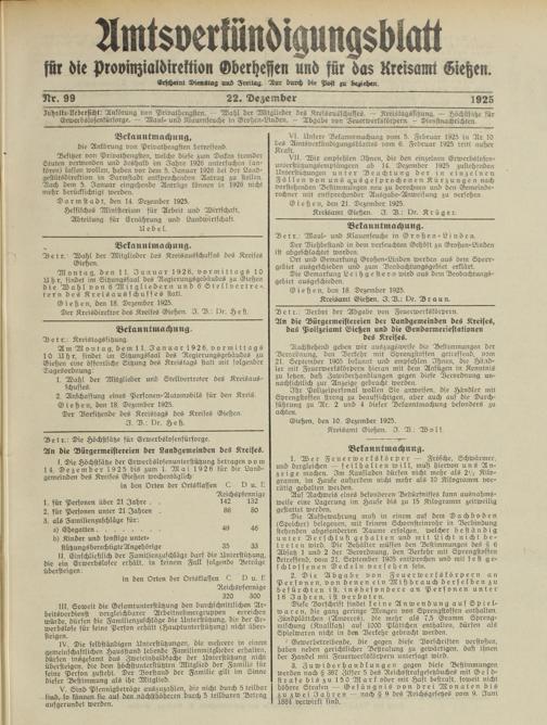 Kreisamt Gießen. I. V.: Dr. Krüger.