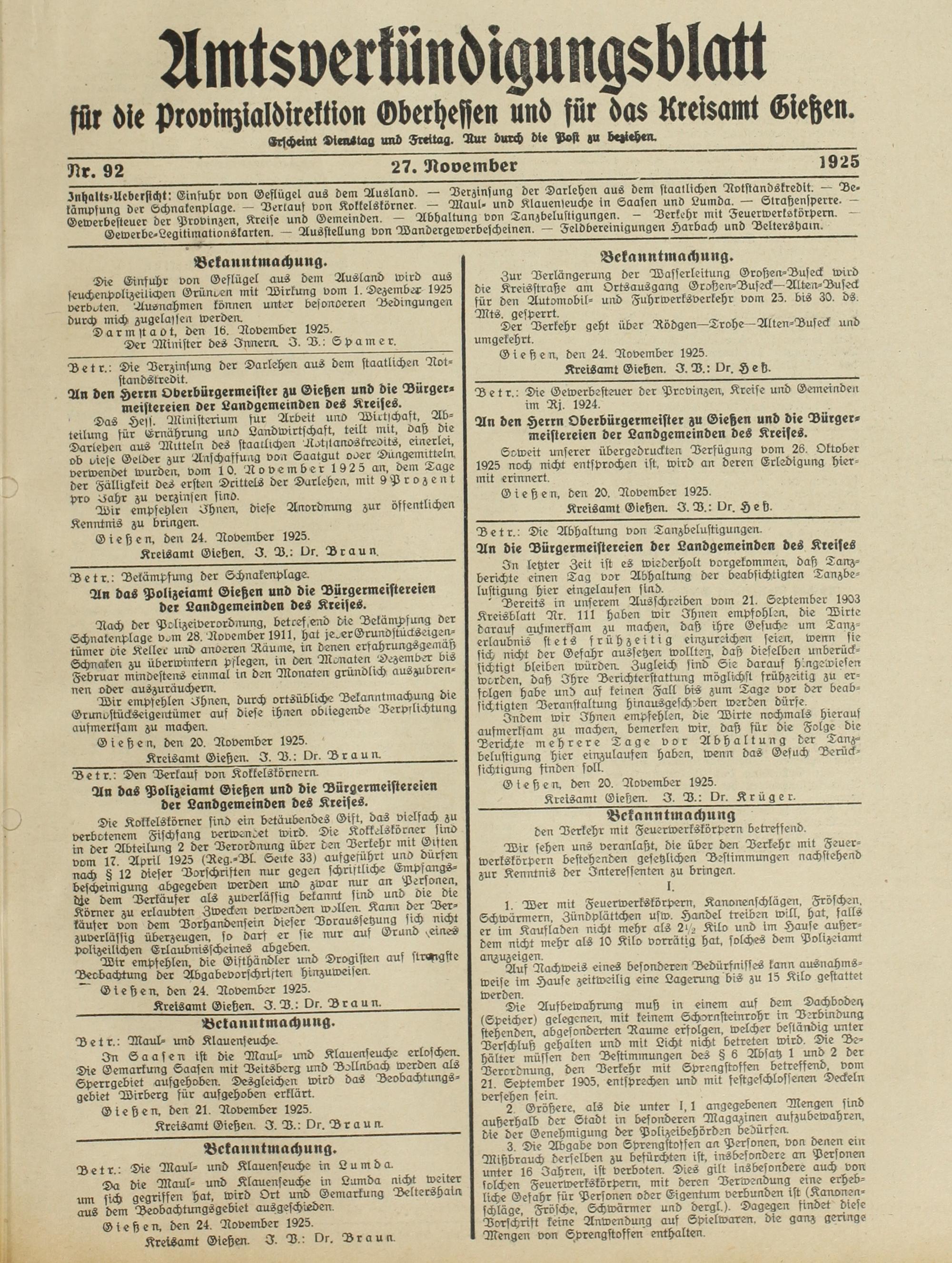 Kreisamt Gießen. 3. B.: Dr. Braun.