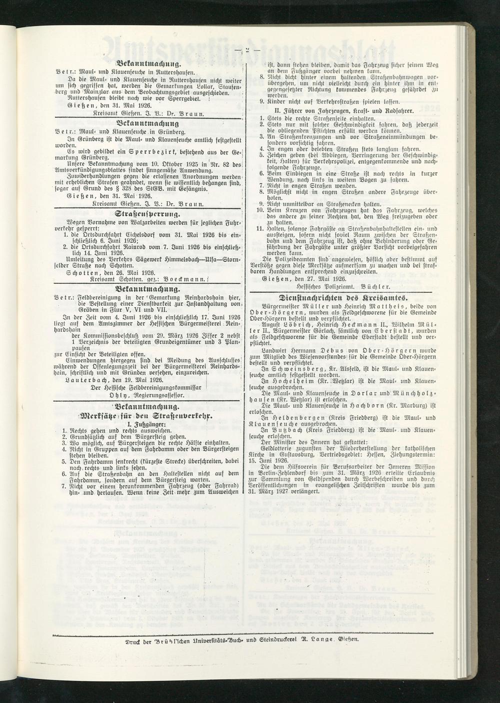 ____________Kreisamt Gießen. I. B.: Dr. Brau n.____________