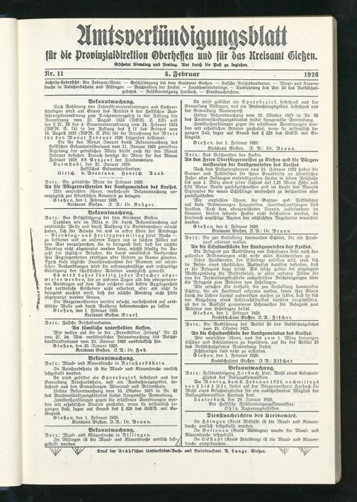 Gießen, den 3. Februar 1926.