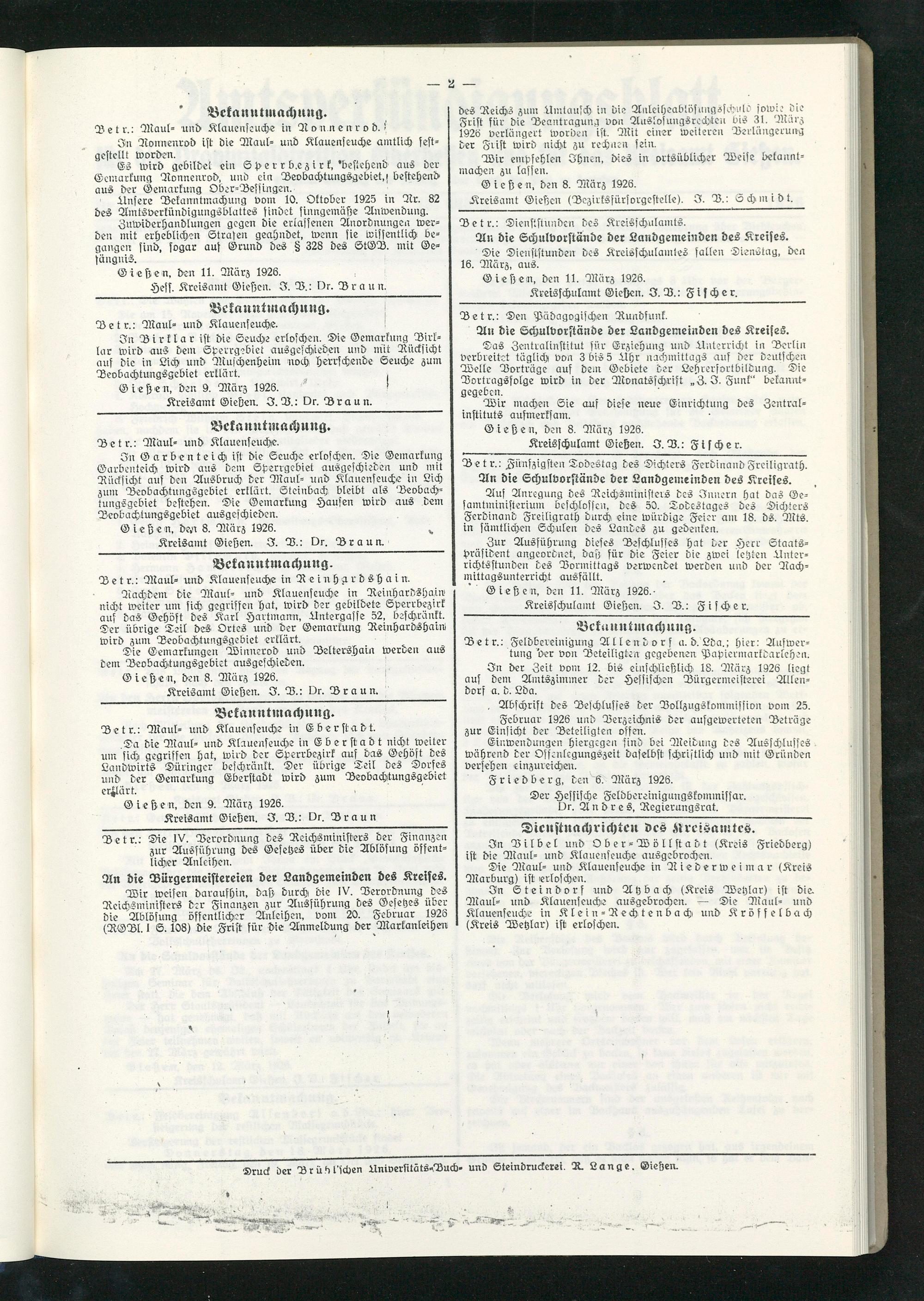 Kreisamt Gießen. I. V.: Dr. Braun.