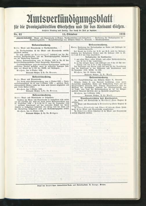 Kreisamt Gießen. I. B.: Dr. Brau n.