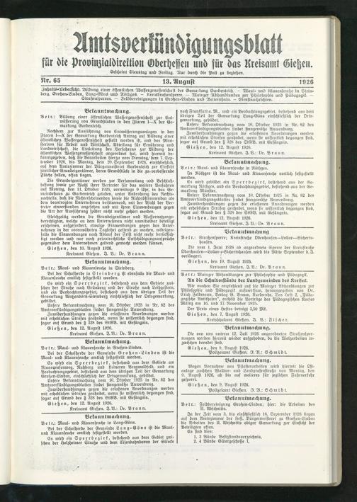 Kreisamt Gießen. I. V.: Dr. Braun.____________
