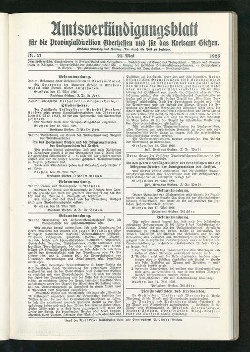 Gießen, den 19. Mai 1926.