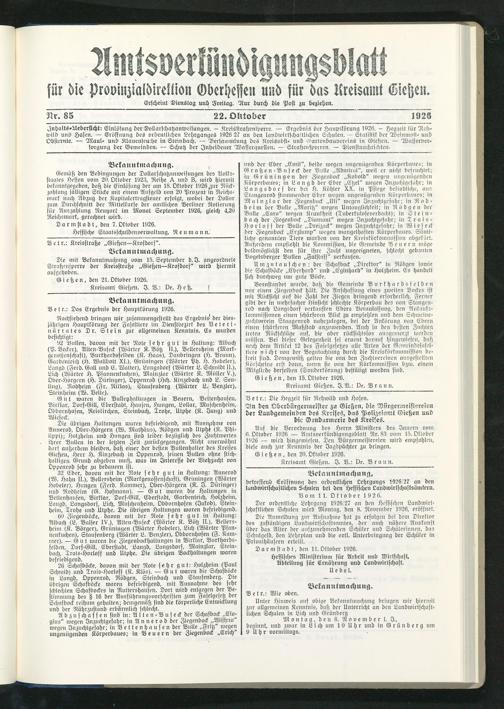 Kreisamt Gießen. I. SB.: Dr. Brau n.