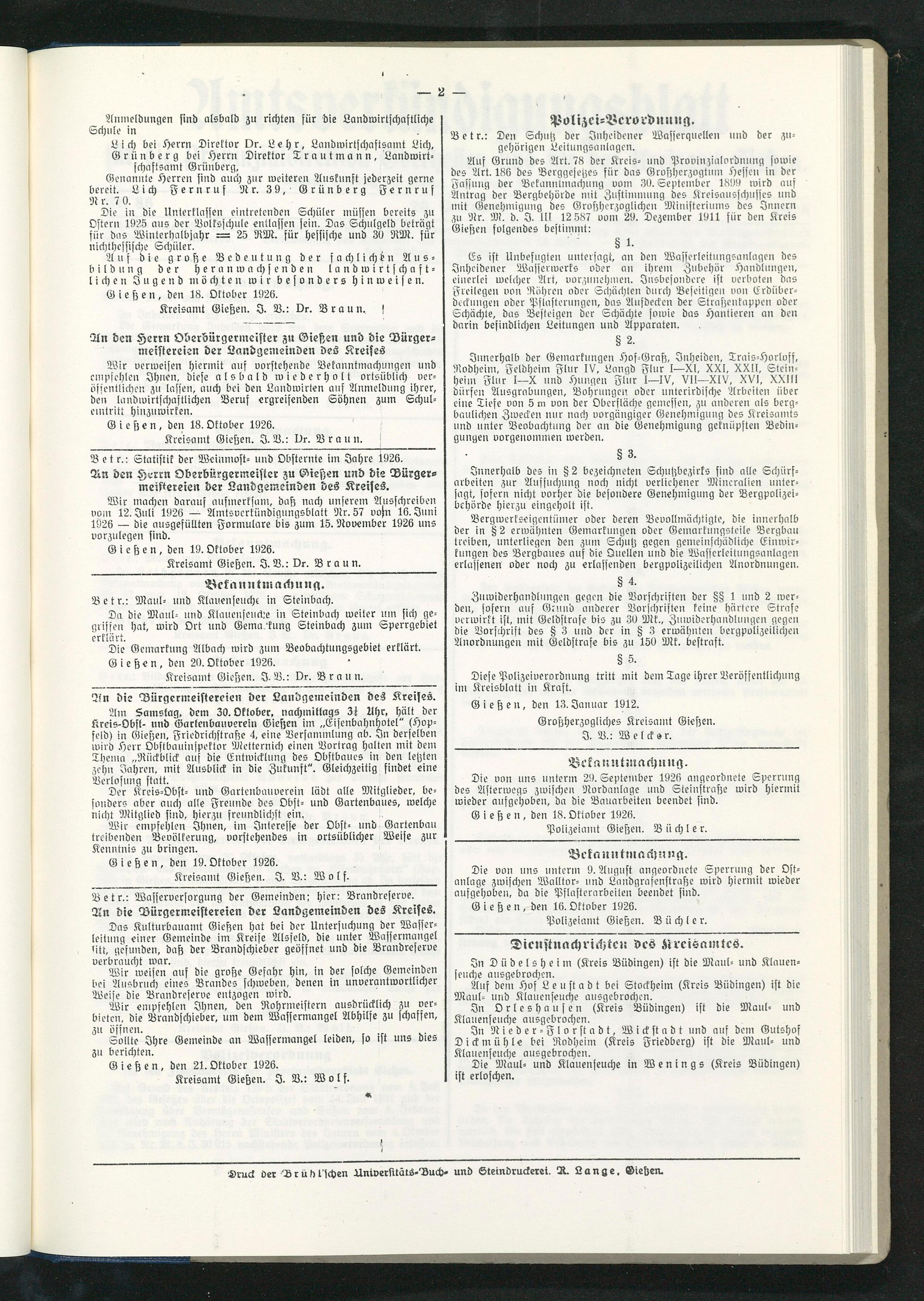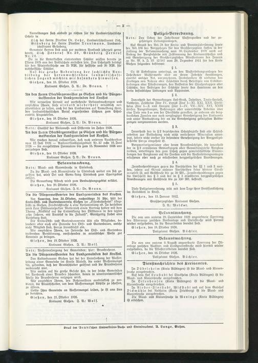 Kreisamt Gießen. I. V.: Dr. Braun. !