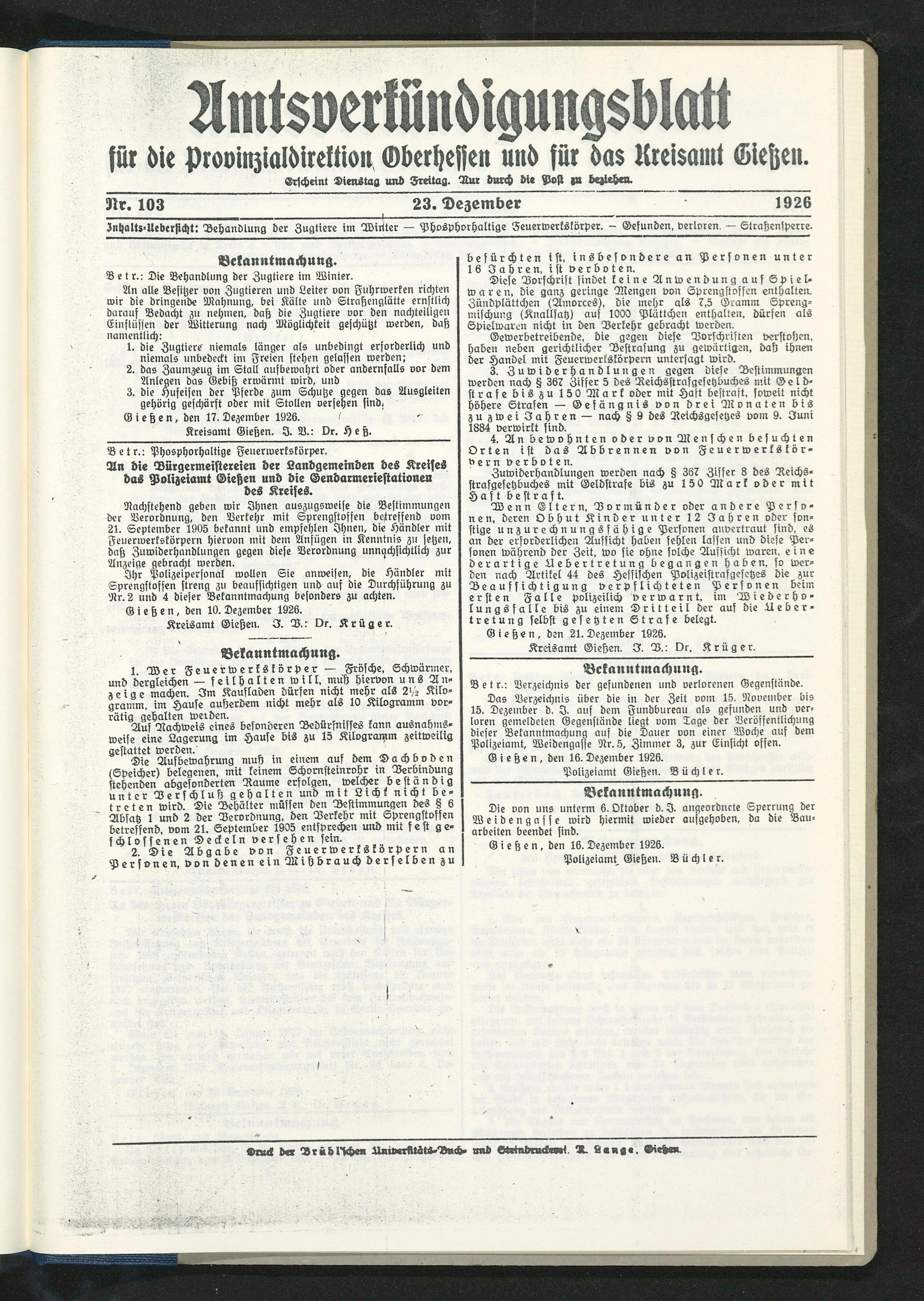 Gießen, den 21. Dezember 1926.