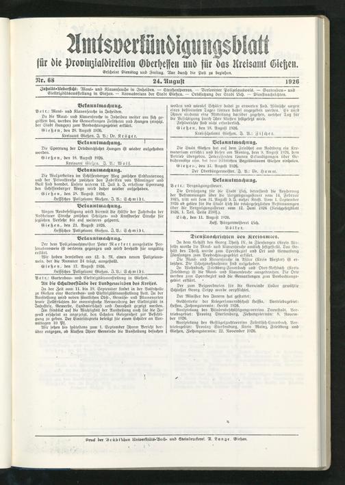 ______________Kreisamt Gießen. I. V.: vr. K r ü g e r. _________