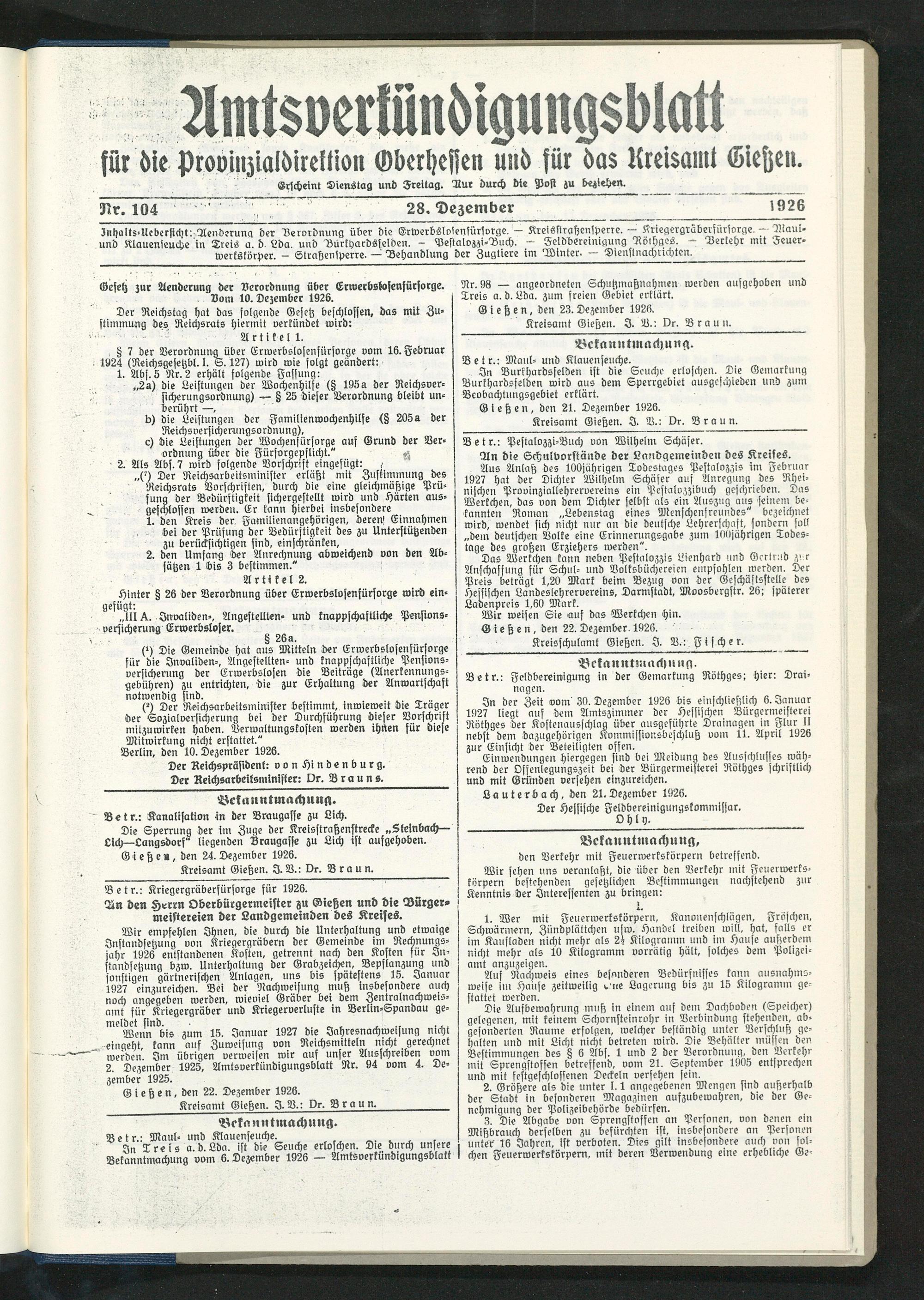 ____________Kreisamt Gießen. I. V.: Dr. Braun.____________