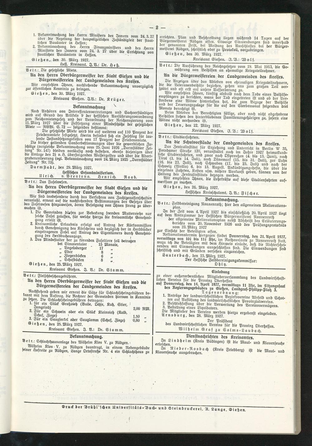 Kreisamt Gießen. I. SB.: Dr. Stamm.