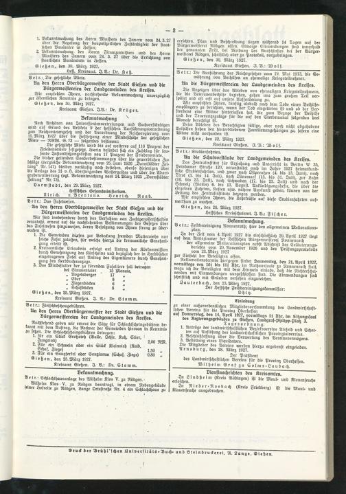 Kreisamt Gießen. J.V.: Dr. Krüger.