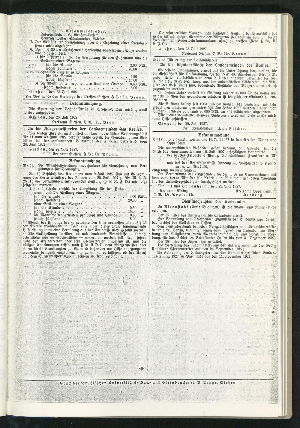 Kreisamt Gießen. 3. SB.: Dr. Braun.