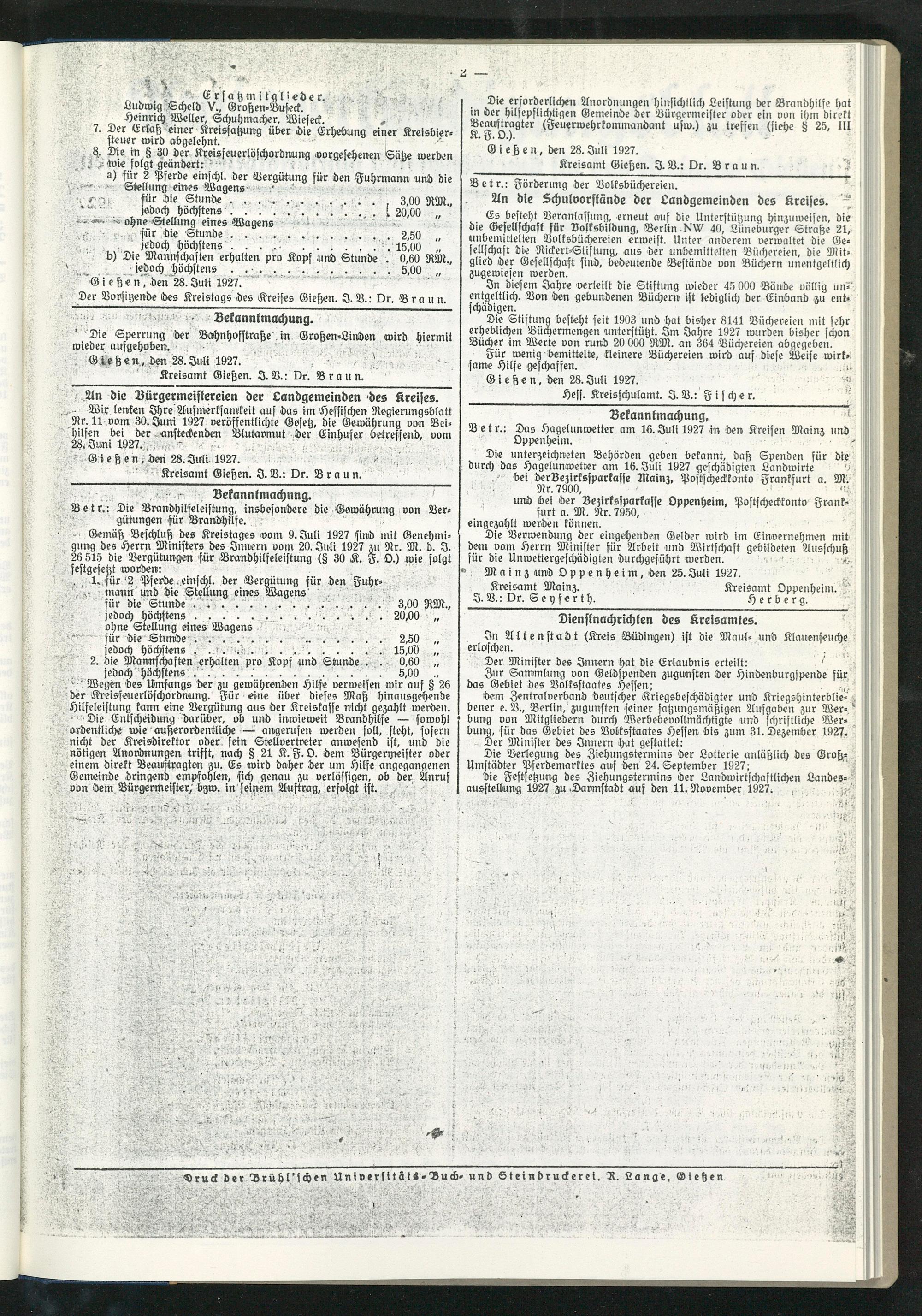 Kreisamt Gießen. 9. SB.: Dr. Braun.