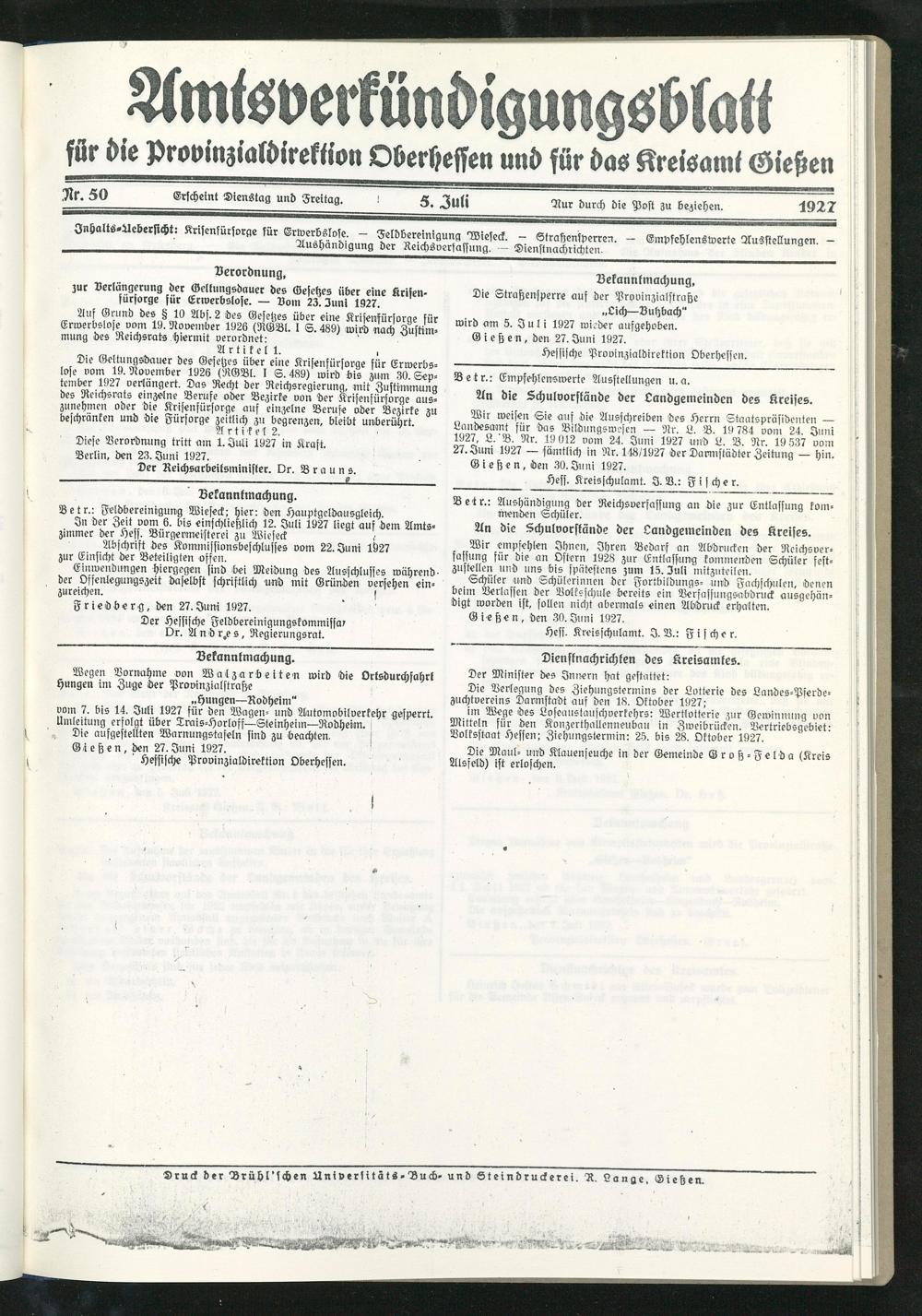für die provinzialdirektton Oberheffen und für das Kreisamt Gießen