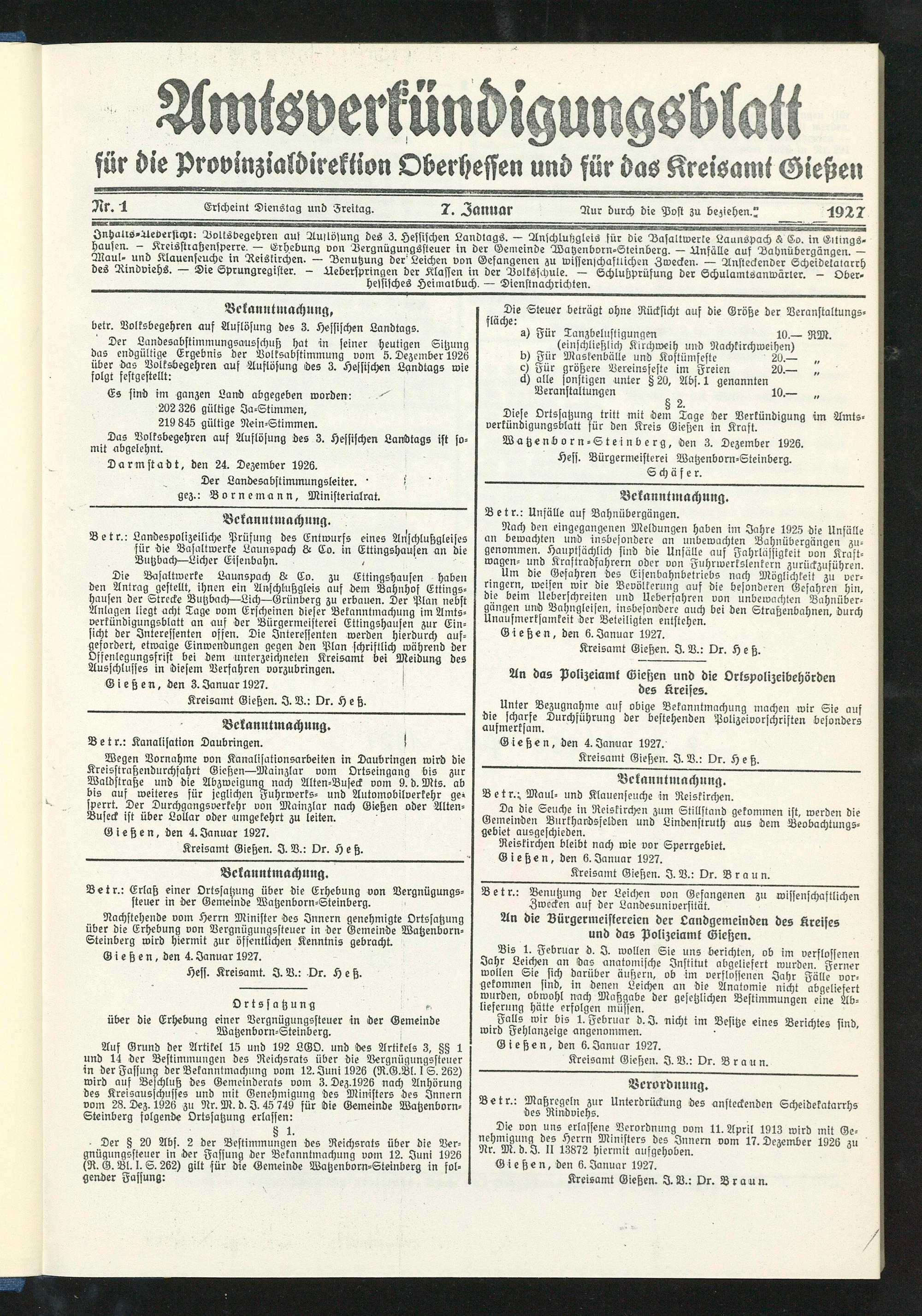 Kreisamt Gießen. I. V.: Dr. Braun.