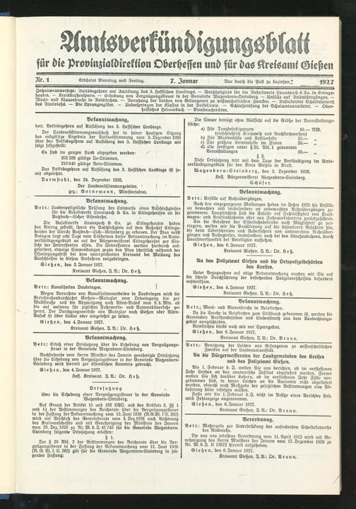_______________Kreisamt Gießen. I. V.: Dr. Braun.
