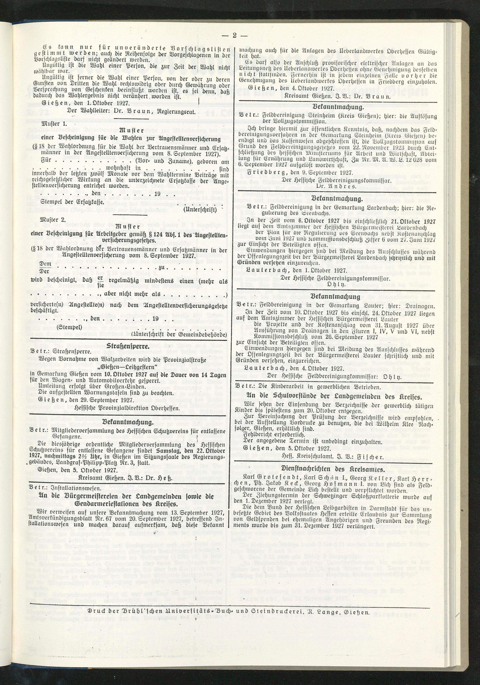 Kreisamt Gießen. I. B.: Dr. Brau n.
