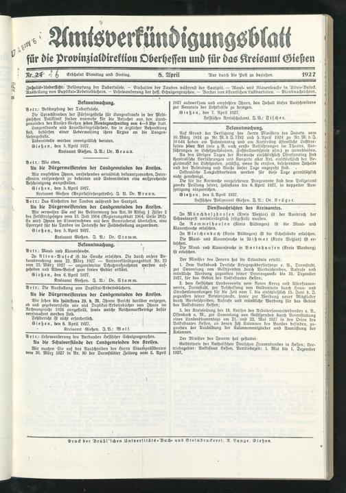Kreisamt Gießen. I. B.: Dr. Braun.