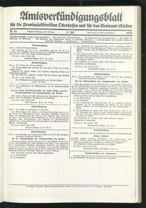 Kreisamt Gießen. I. 93.: Dr. H e ß.