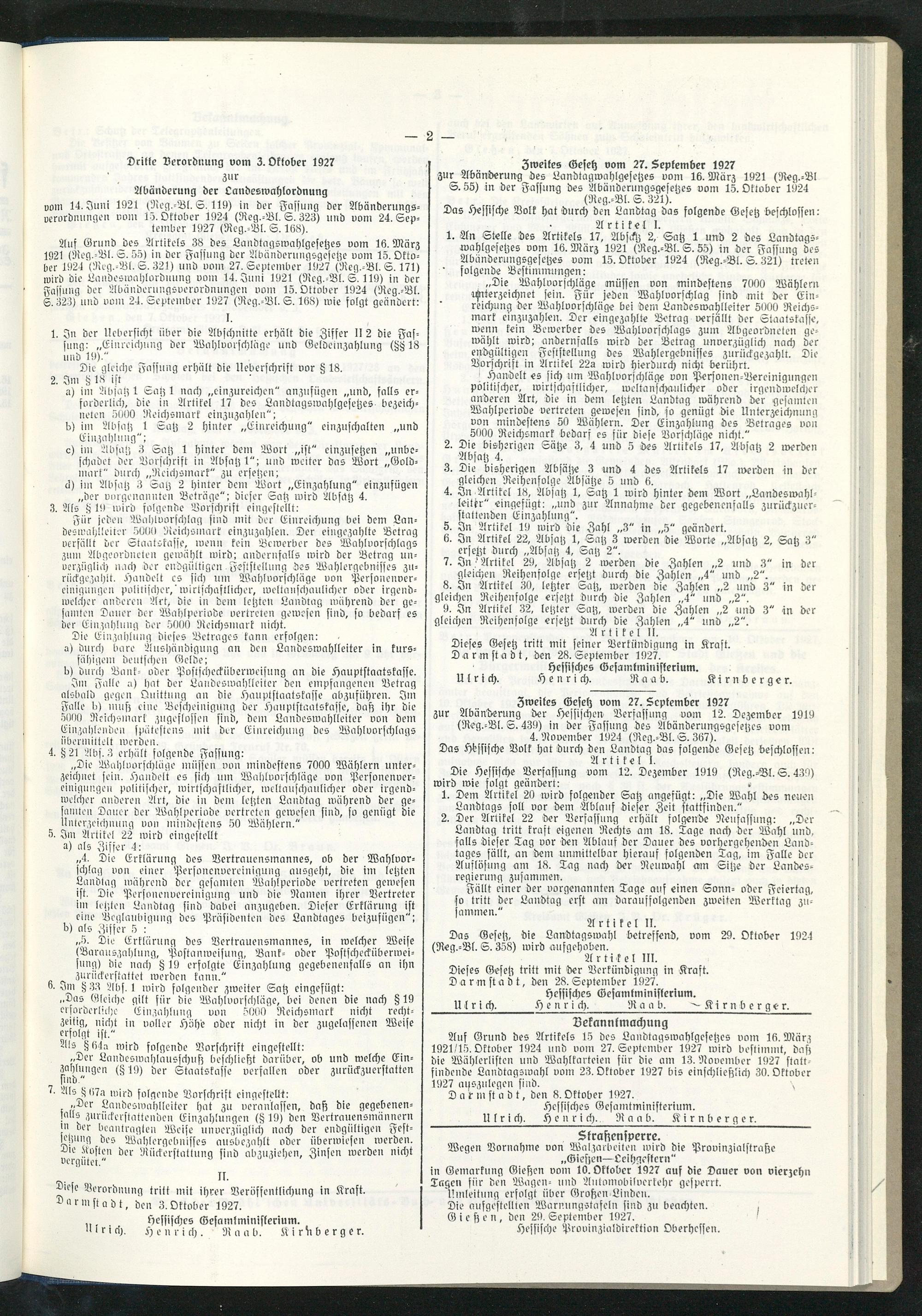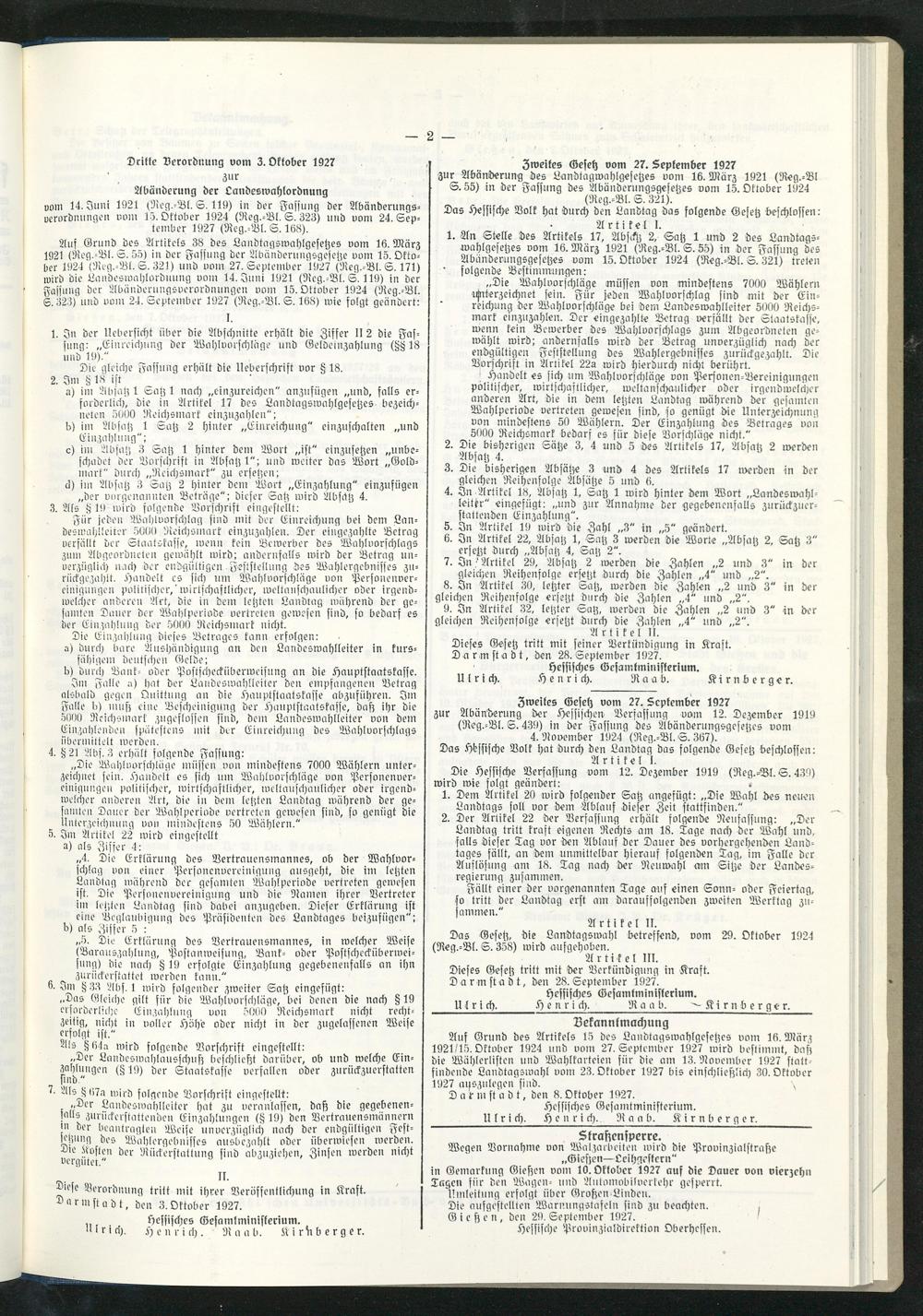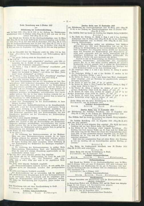 •Liefe Verordnung tritt mit ihrer Veröffentlichung in Kraft. Darmstadt, den 3.Oktober 1927.