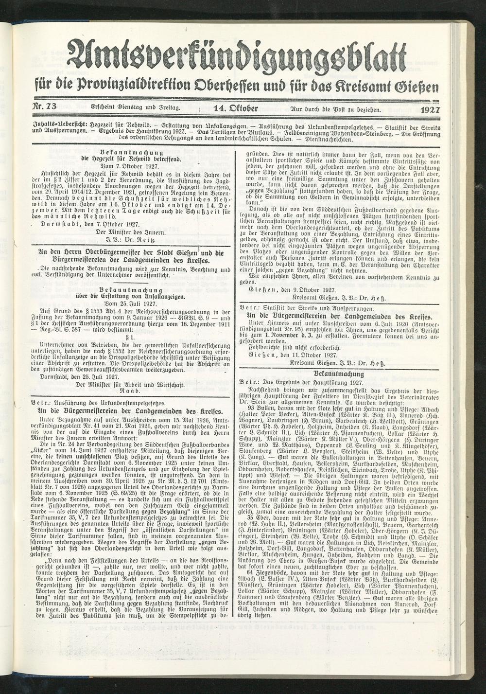 Kreisamt Gießen. I. V.: Dr. Heß.