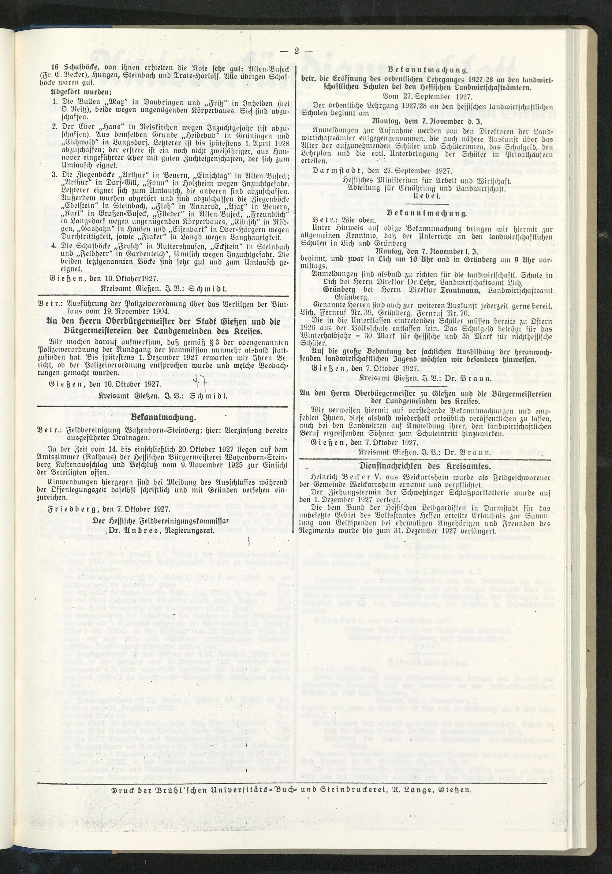 Kreisamt Gießen. I. V.: Dr. Brau n.
