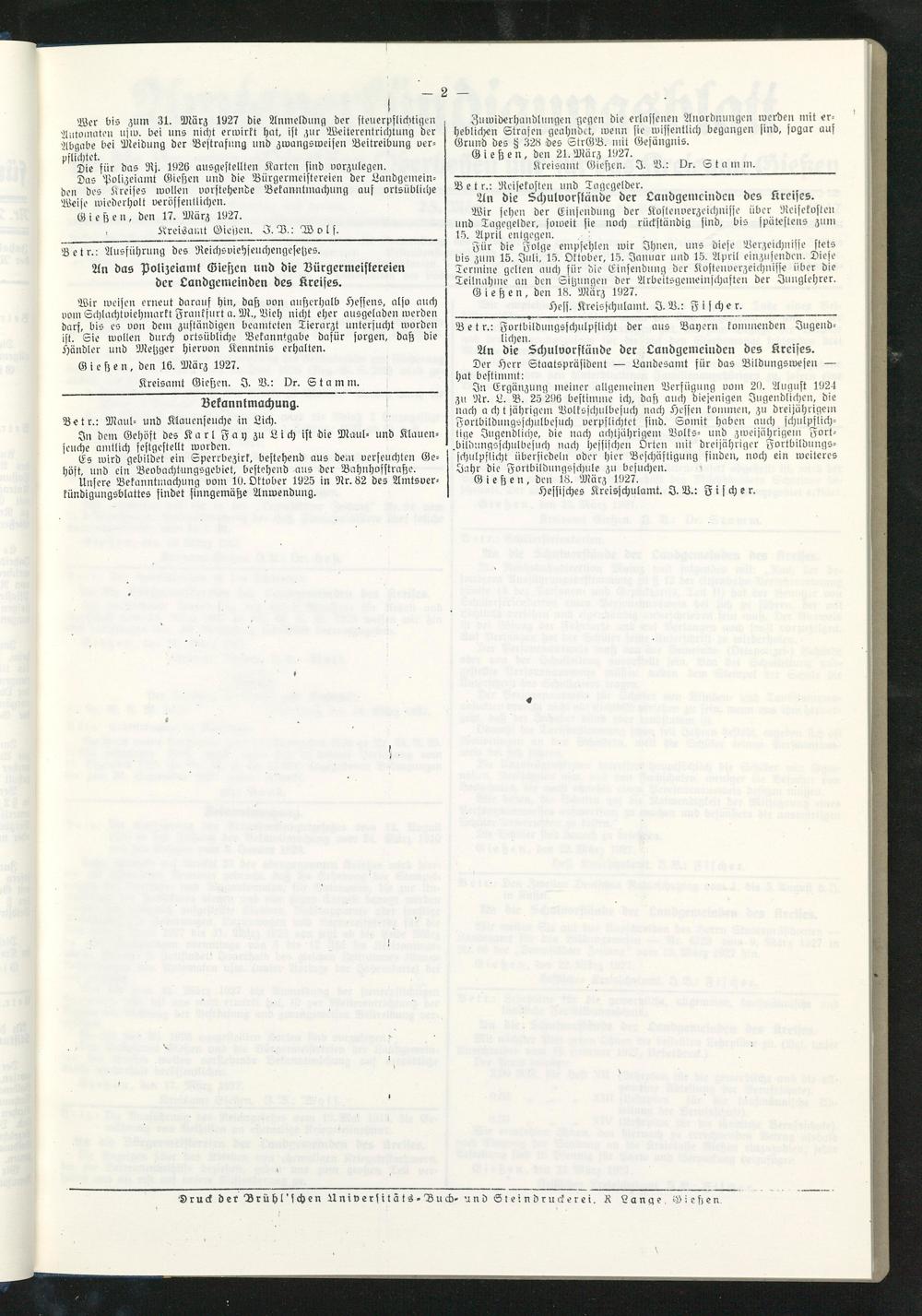 Kreisamt Gießen. I. V.: Dr. S t n in in.