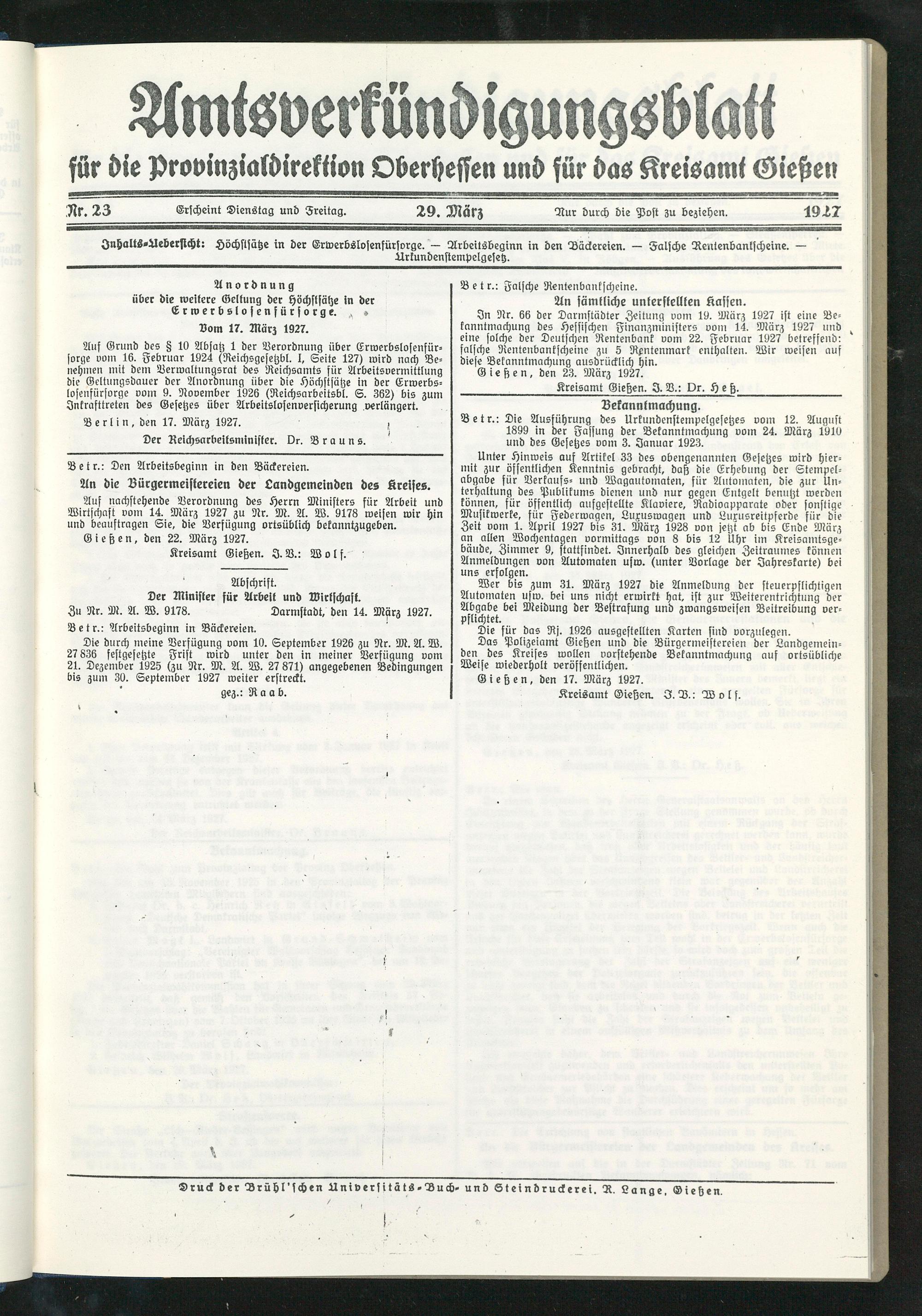 _________________Kreisamt Gießen. I. V.: Dr. Heß.