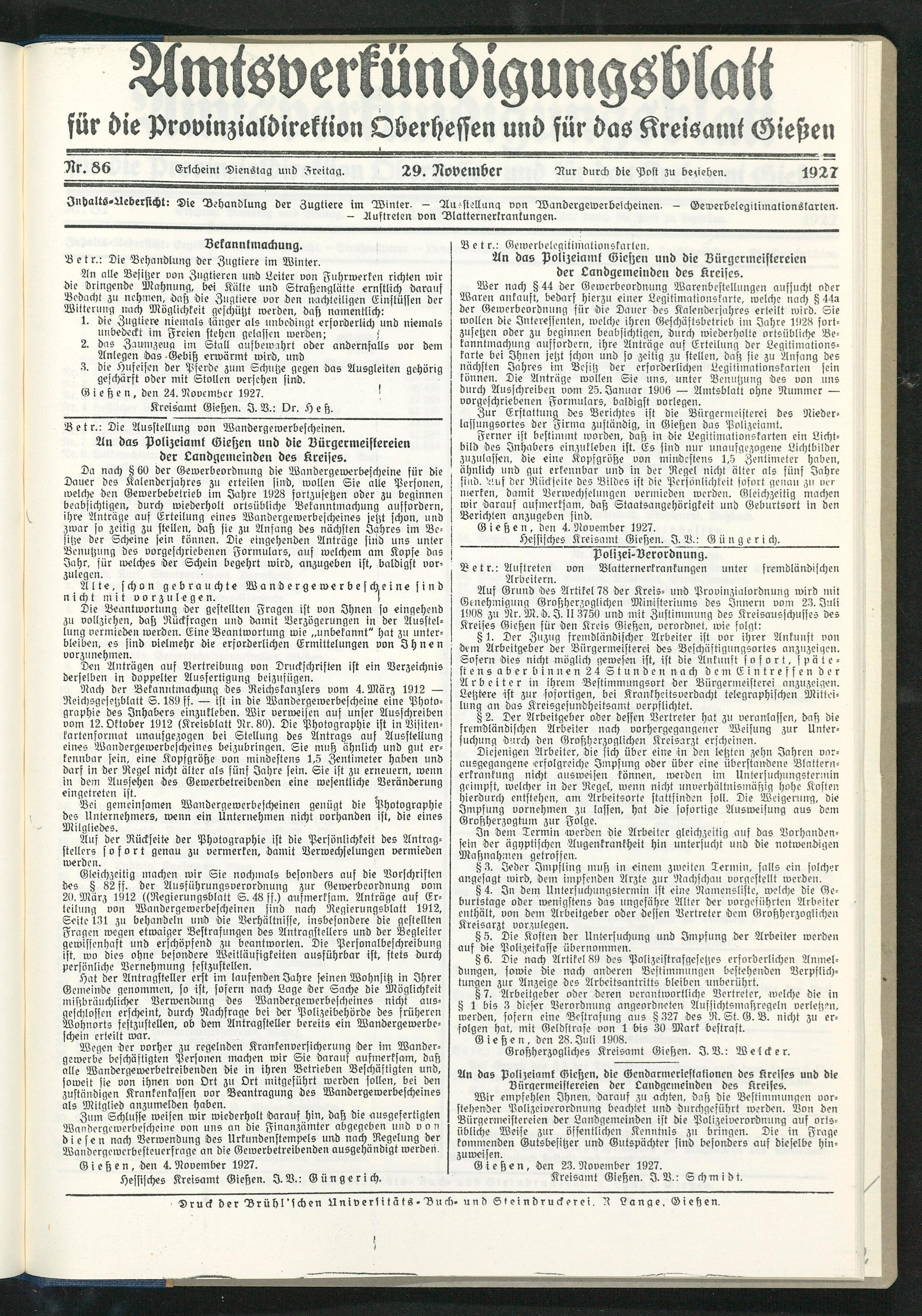 Kreisamt Gießen. I. V.: Dr. H e ß.