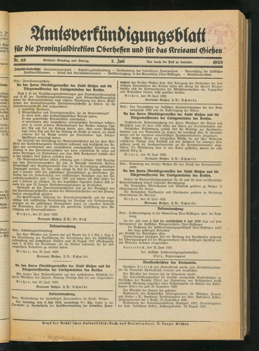 S für die provinziatdirektion Ober-effen und für Vas Kreisamt Gießen