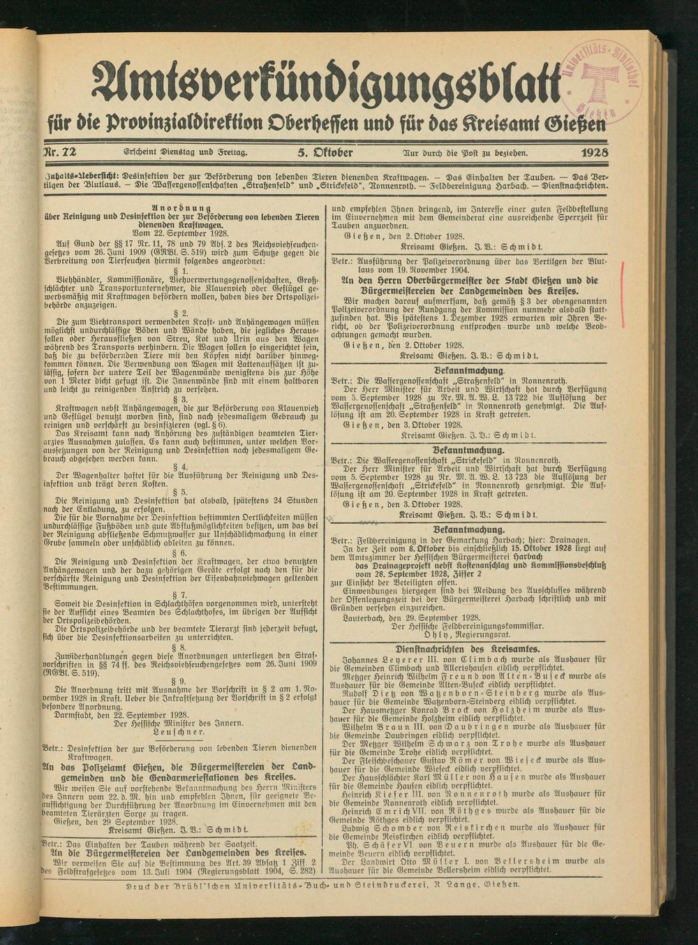 Kreisamt Gießen. I. V.: Schmidt.
