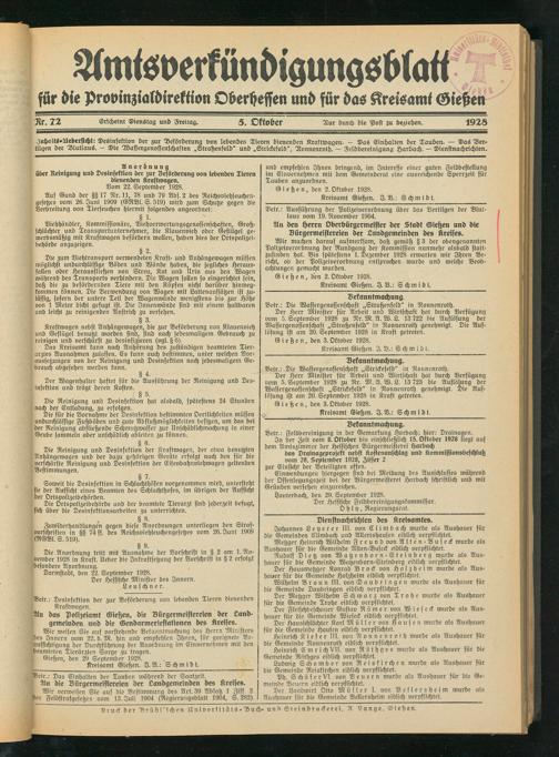 für die Provinzialdirektion Oberheffen und für das Kreisamt Gießen
