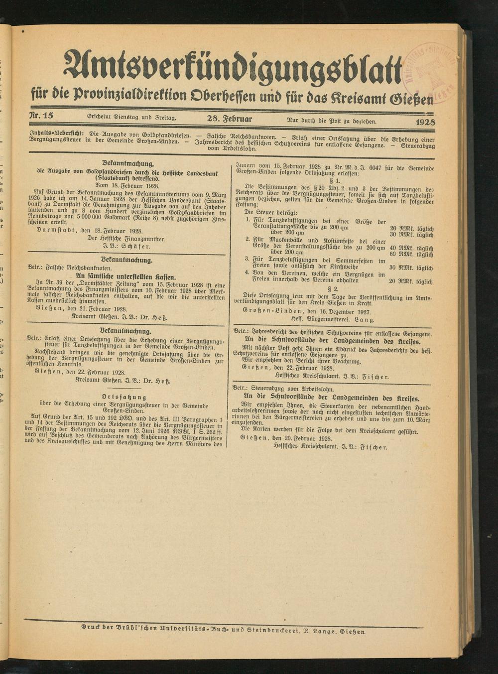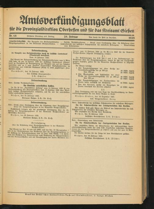 Kreisamt Gießen. I. V.: Dr. Heß.
