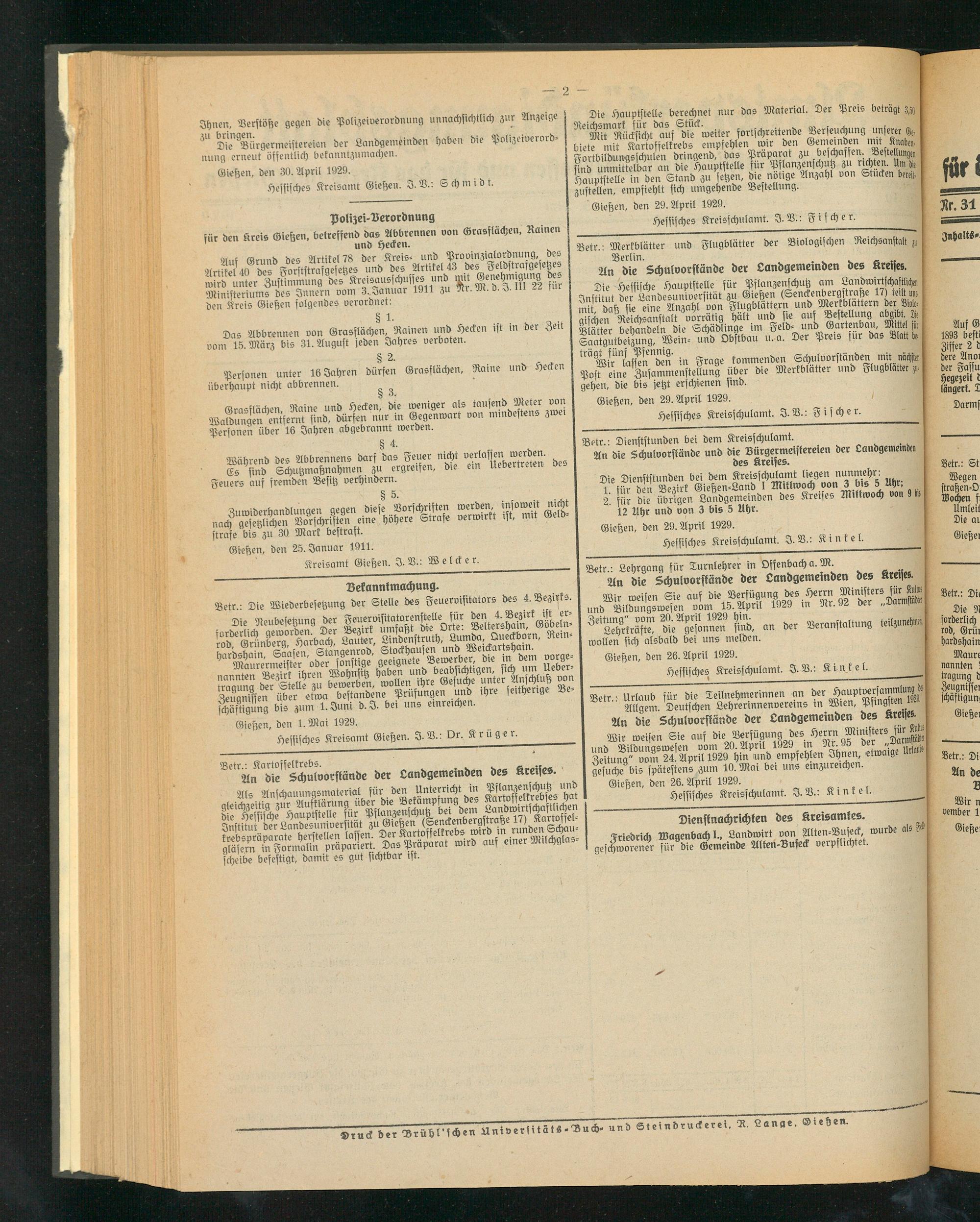 Kreisamt Gießen. I. V.: W e l ck e r. _____