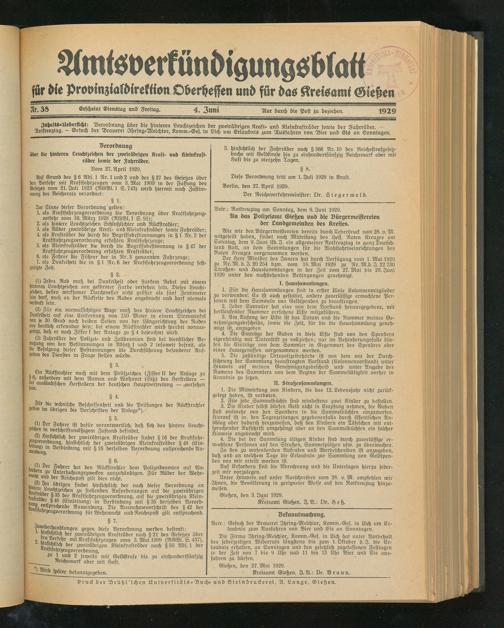 Kreisamt Gießen. I. V.: Dr. Braun.