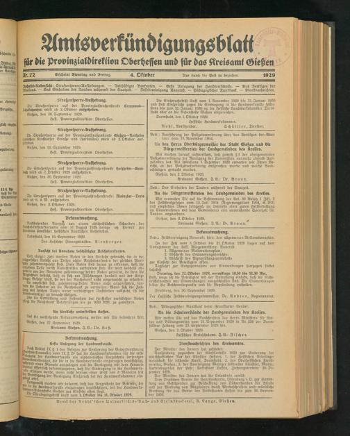 Kreisamt Gießen. I. V.: Dr. Braun.'