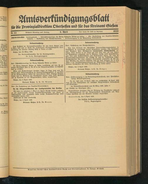 Kreisamt Gießen. I. B.: Dr. Braun.