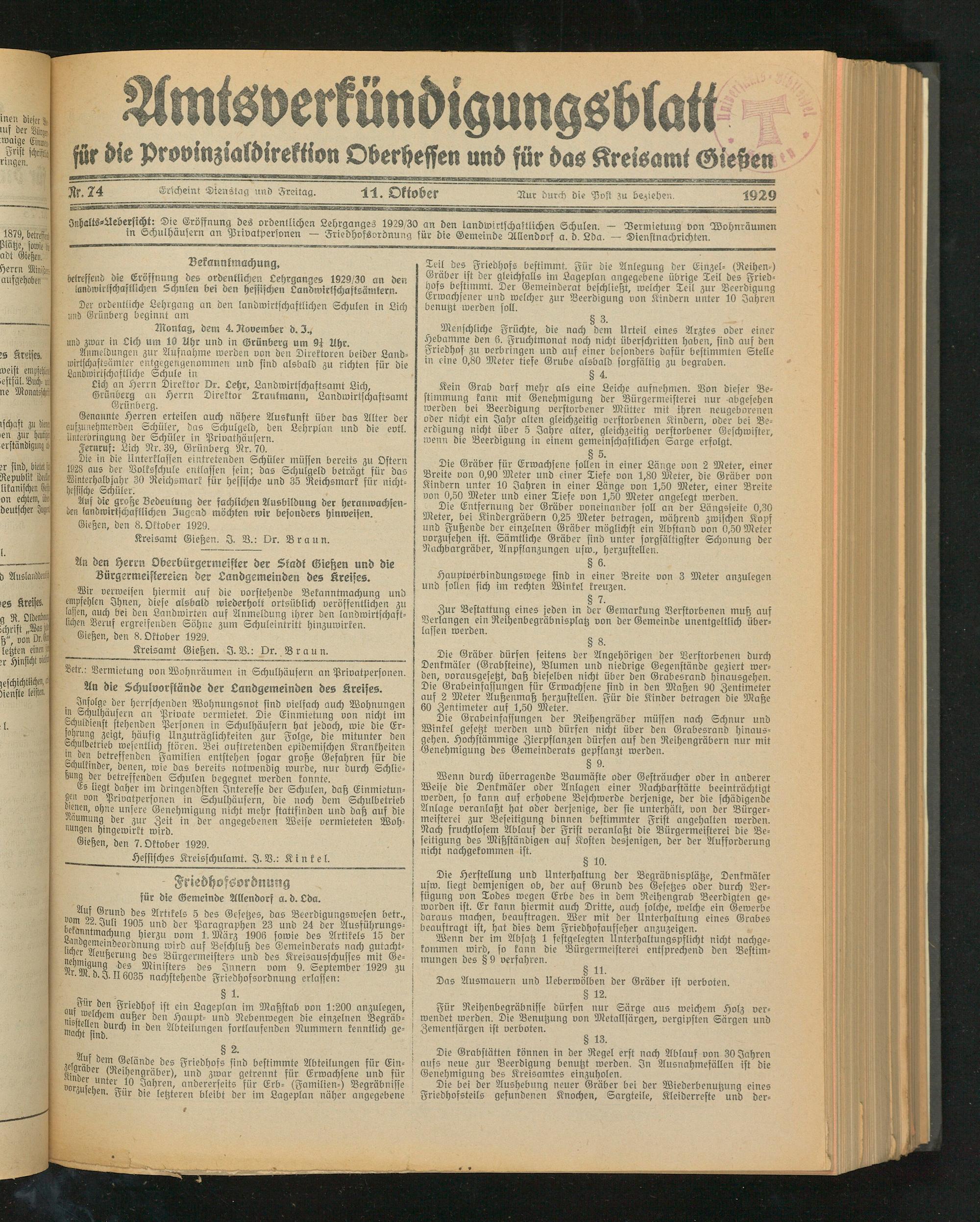 Kreisamt Gießen. I. V.: Dr. Braun.