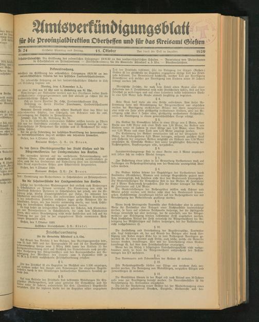 für die prosinzialdirektion OSerheffen und für das Kreisamt Gießen