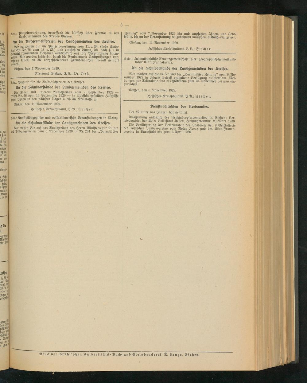 Wir weisen Sie auf das Ausschreiben des Herrn Ministers für Kultus unb Bildungswefen vom 6. November 1929 in Nr. 261 der „Darmstädter