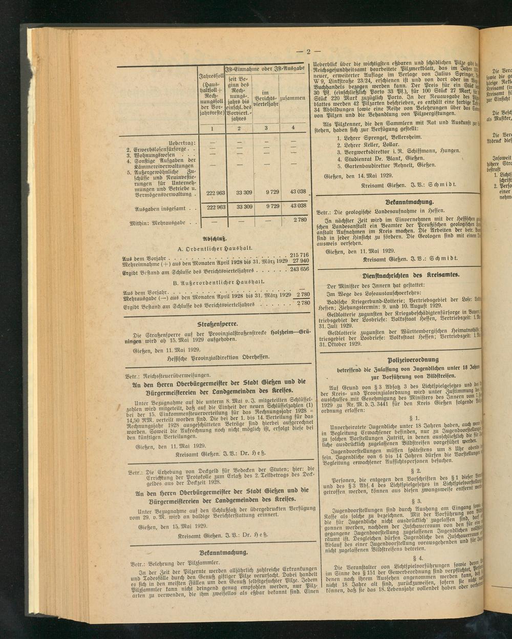 Auf Grund von §3 Absatz 3 des Lichtspielgesetzes und d--t der Kreis- und Provinzialordnung wird unter Zustimmung ausschus es mit Genehmigung des Ministers des Innern v°m c 1929 zu Nr. M. d. 1.3441 für den Kreis Gießen folgende N ordnung erlassen: