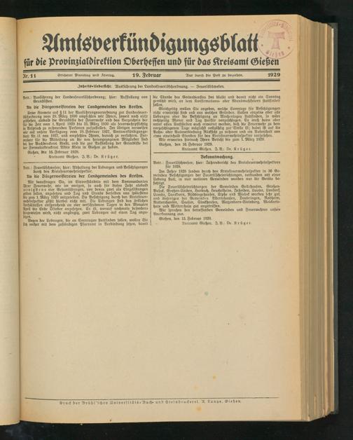 Kreisamt Gießen. I. V.: vr. Krüger.