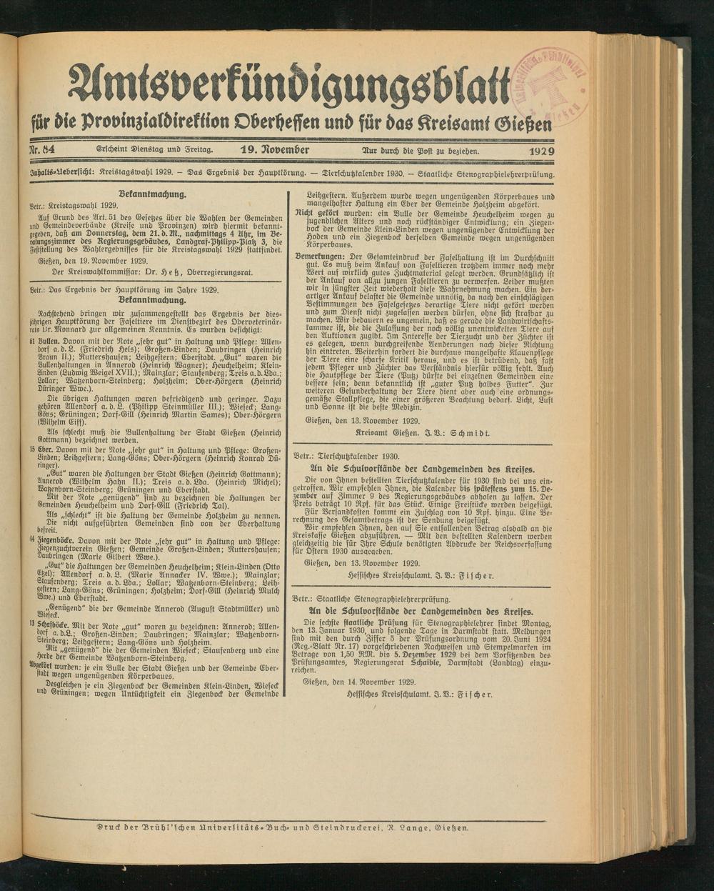 Gießen, den 19. November 1929.