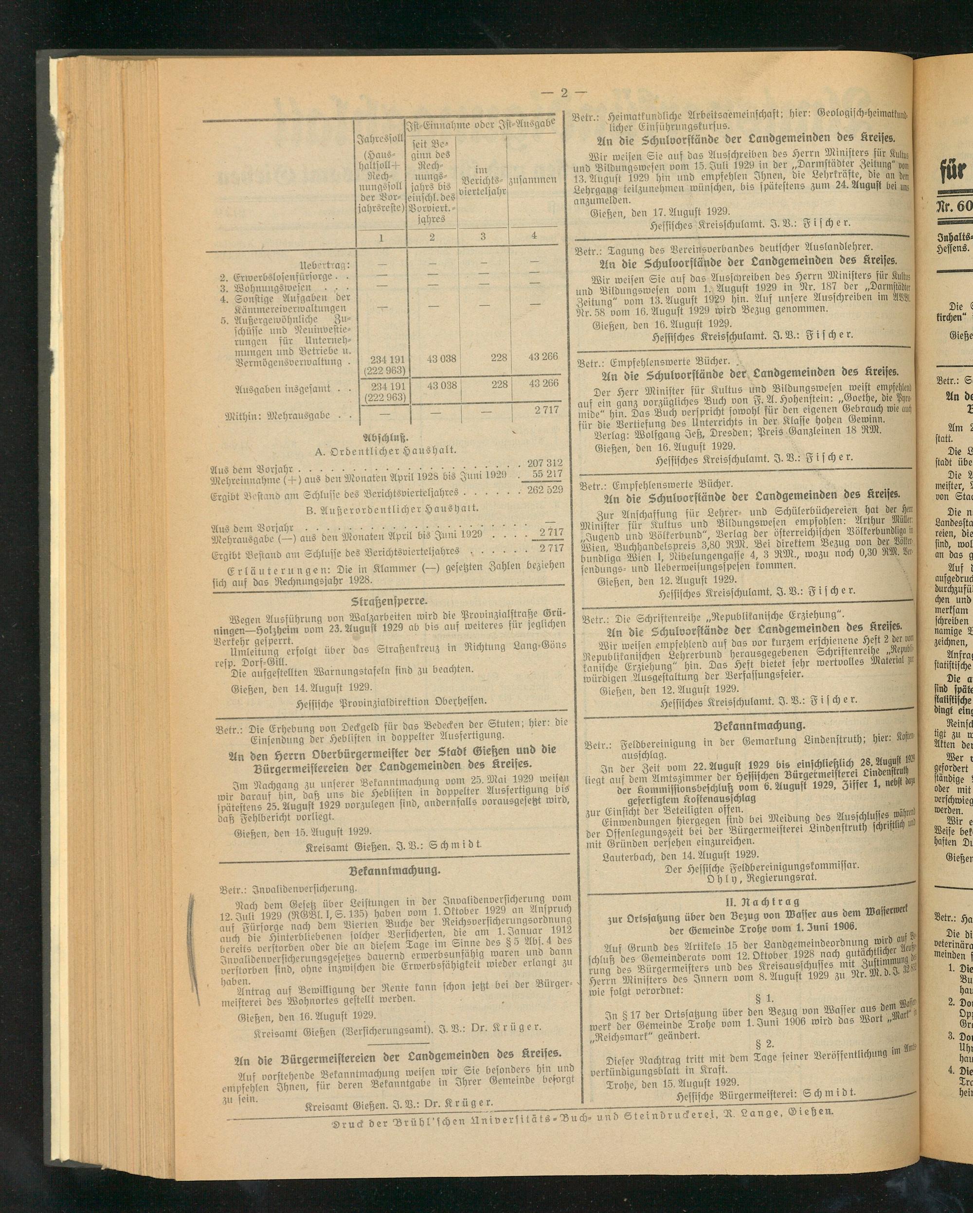 Gießen, den 16. August 1929.