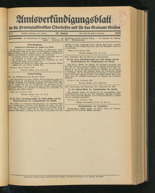 für die Provinzialdirektion Oberheffen und für das Kreisami Gießen