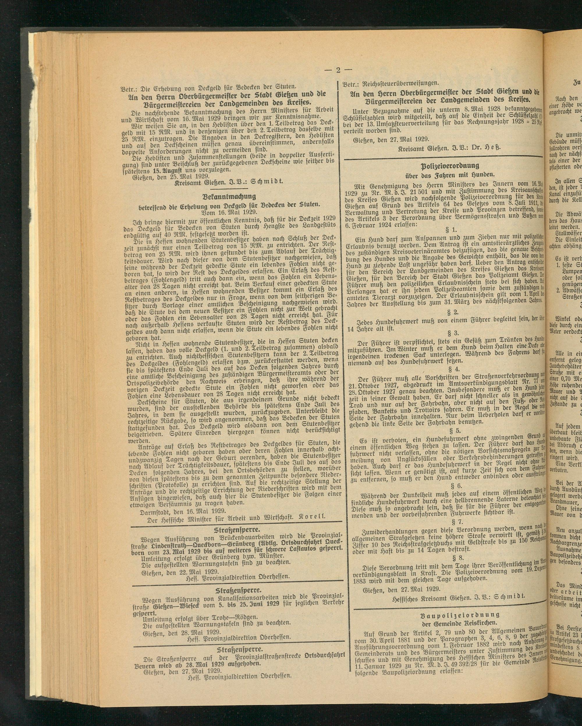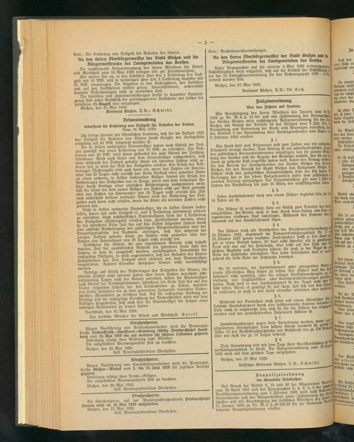 Mit Genehmigung des Herrn Ministers des Innern vom M 1929 zu Nr M. d. I. 21 501 und mit Zustimmung des Krelsausschch de° Kreises Gießen wird nachfolgende Polizeiverordnung M den Km Gießen auf Grund des Artikels 64 des Gesetzes vom 8. Juli 1911, fc Verwaltung und Vertretung der Kreise und Provinzen betreffend, ,« des Artikels 3 der Verordnung über Vermogensftrafen und Außen e